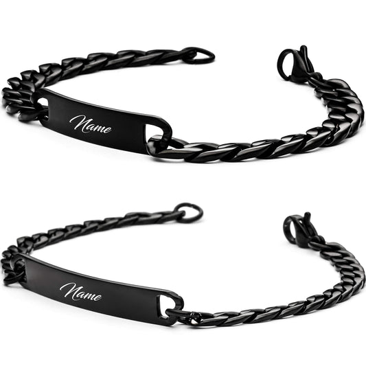 Personalized stainless steel bracelet for men with custom engraving (2 pieces): Silver, Black
