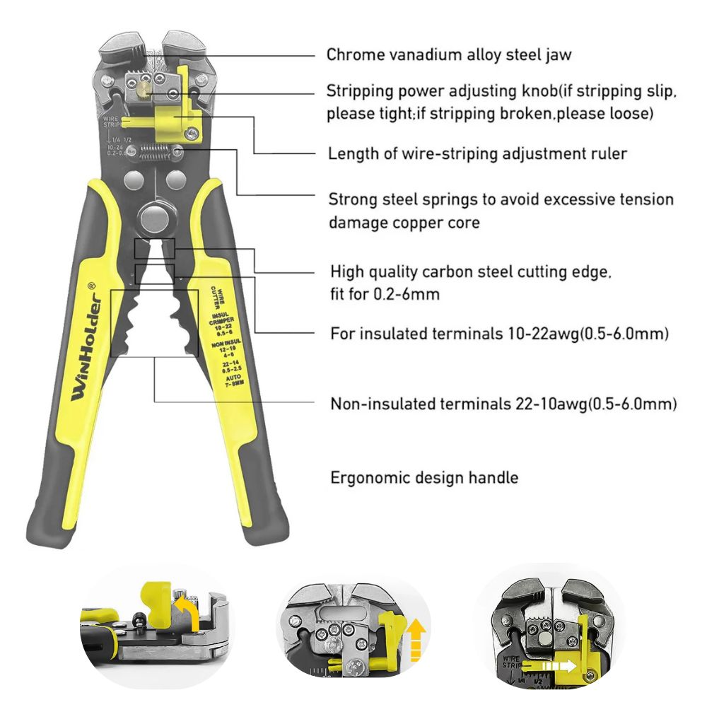 Experience maximum functionality with this automatic crimping tool that combines cutting, stripping and crimping in a single tool. Ideal for DIYers and professionals, it saves time and makes your work much easier.