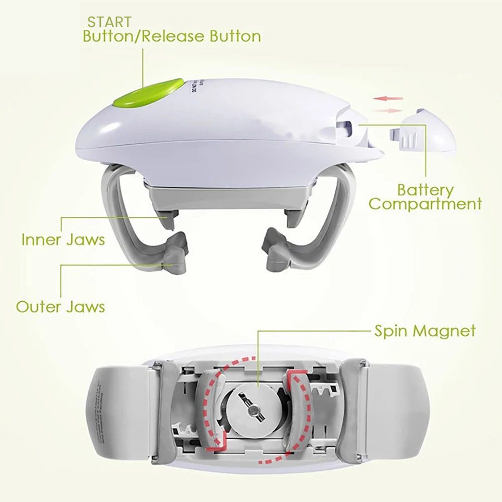 One-button operation : Simply place the opener on the bottle or jar, press the button and let it do the work! The automatic motor opens the lid quickly and effortlessly.