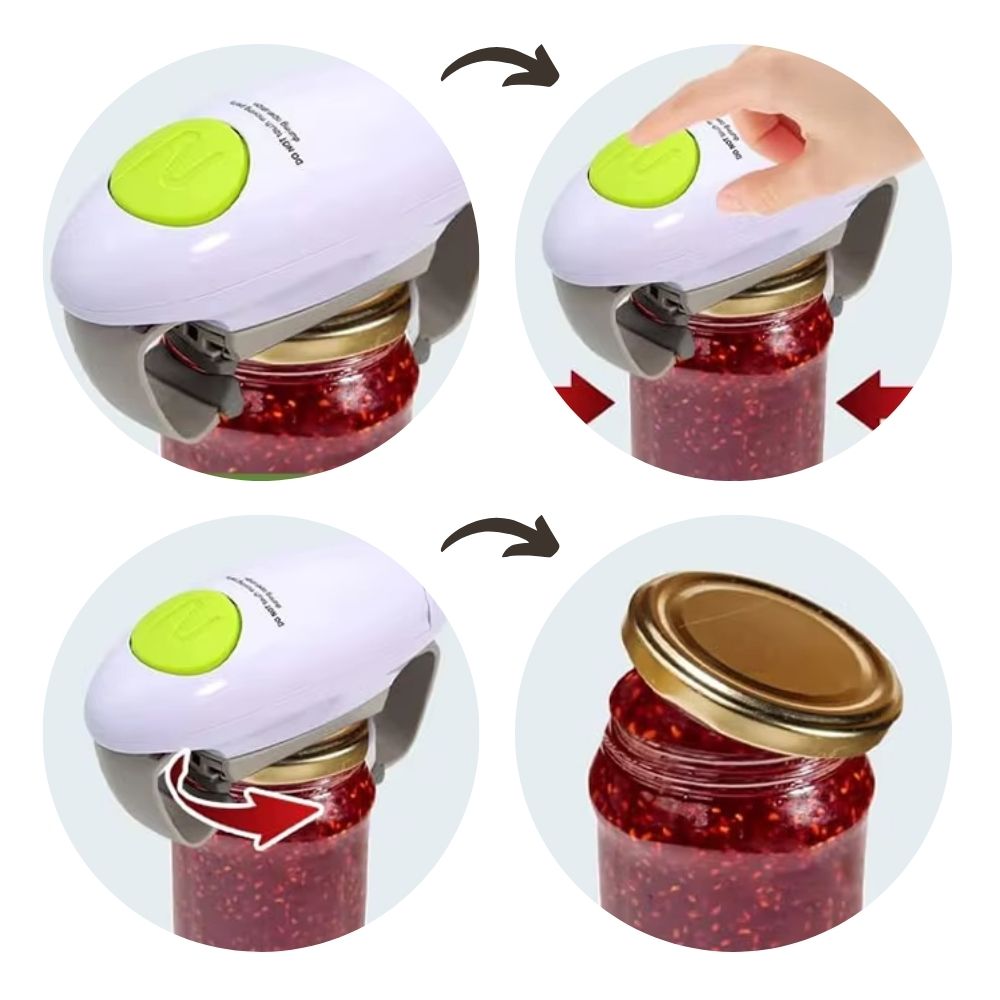 Experience convenience with the electric jar lid opener, an indispensable kitchen tool for easily opening jars, cans and bottles. Ideal for home, restaurants and anyone who wants to save time and effort.
