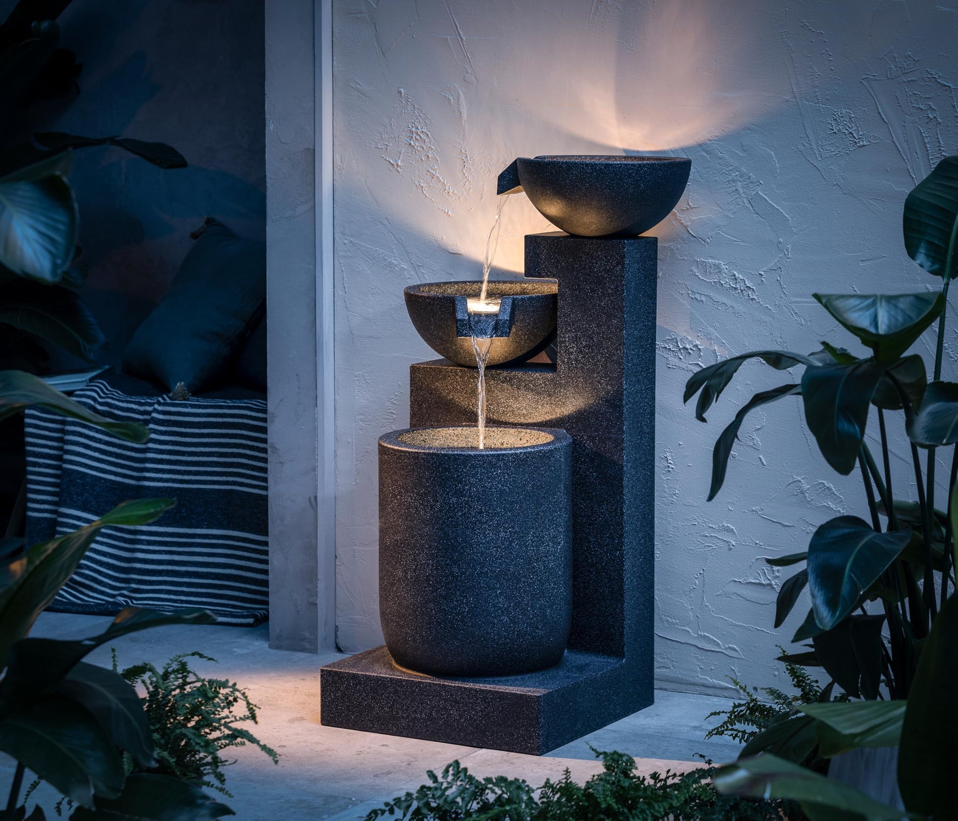 You're sitting on the patio on a beautiful summer day, gazing at your flowers and blooming bushes, while the gentle rippling of water can be heard in the background. And as you enjoy the wonderfully relaxing atmosphere, you'll congratulate yourself every time you chose the Dehner Samson polyresin garden fountain. Because no other fountain creates the relaxing atmosphere quite like this one. It's modeled after a classic cascade fountain, where the water flows down individual steps, but with its linear column shape and modern water bowls, it's a contemporary decorative object that can be integrated into many, even modern, gardens. Treat yourself to something special and choose the Dehner Samson polyresin garden fountain!