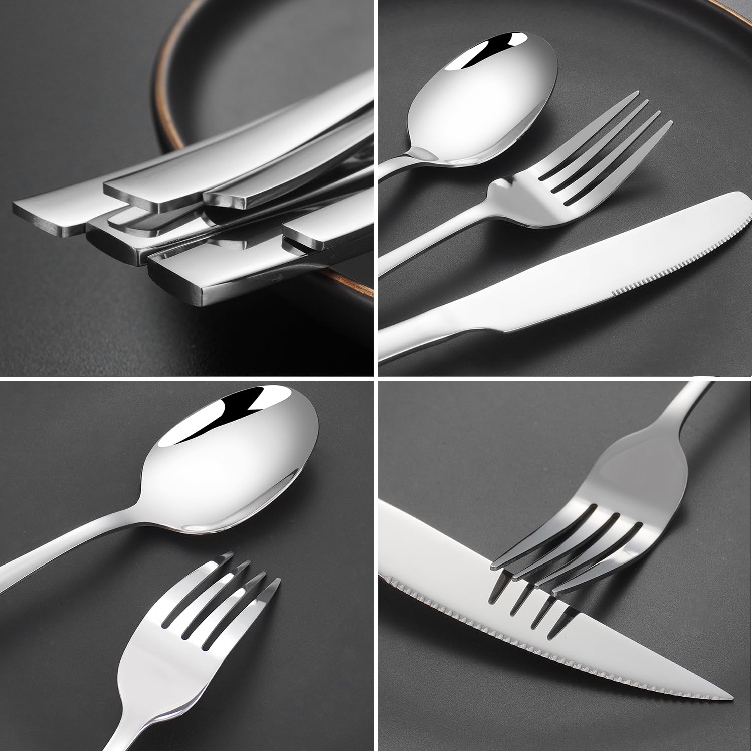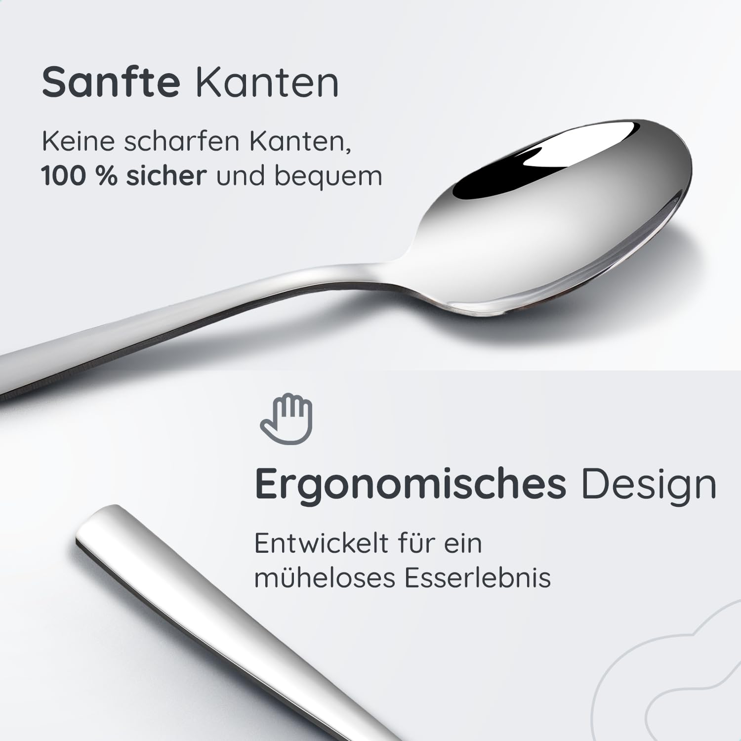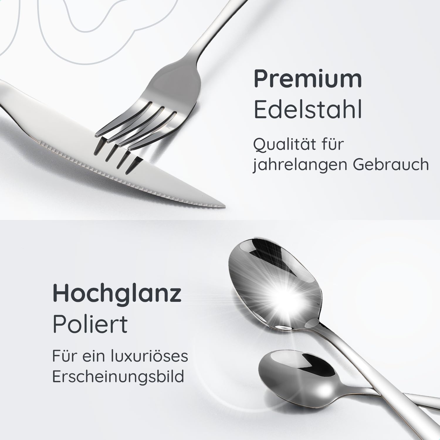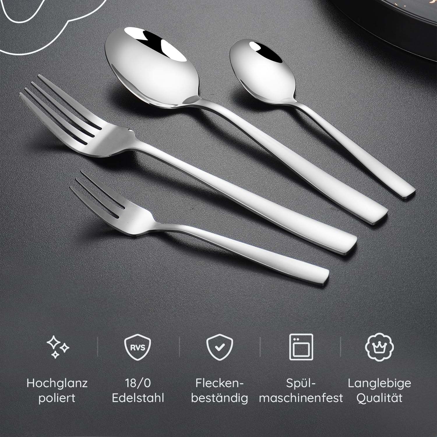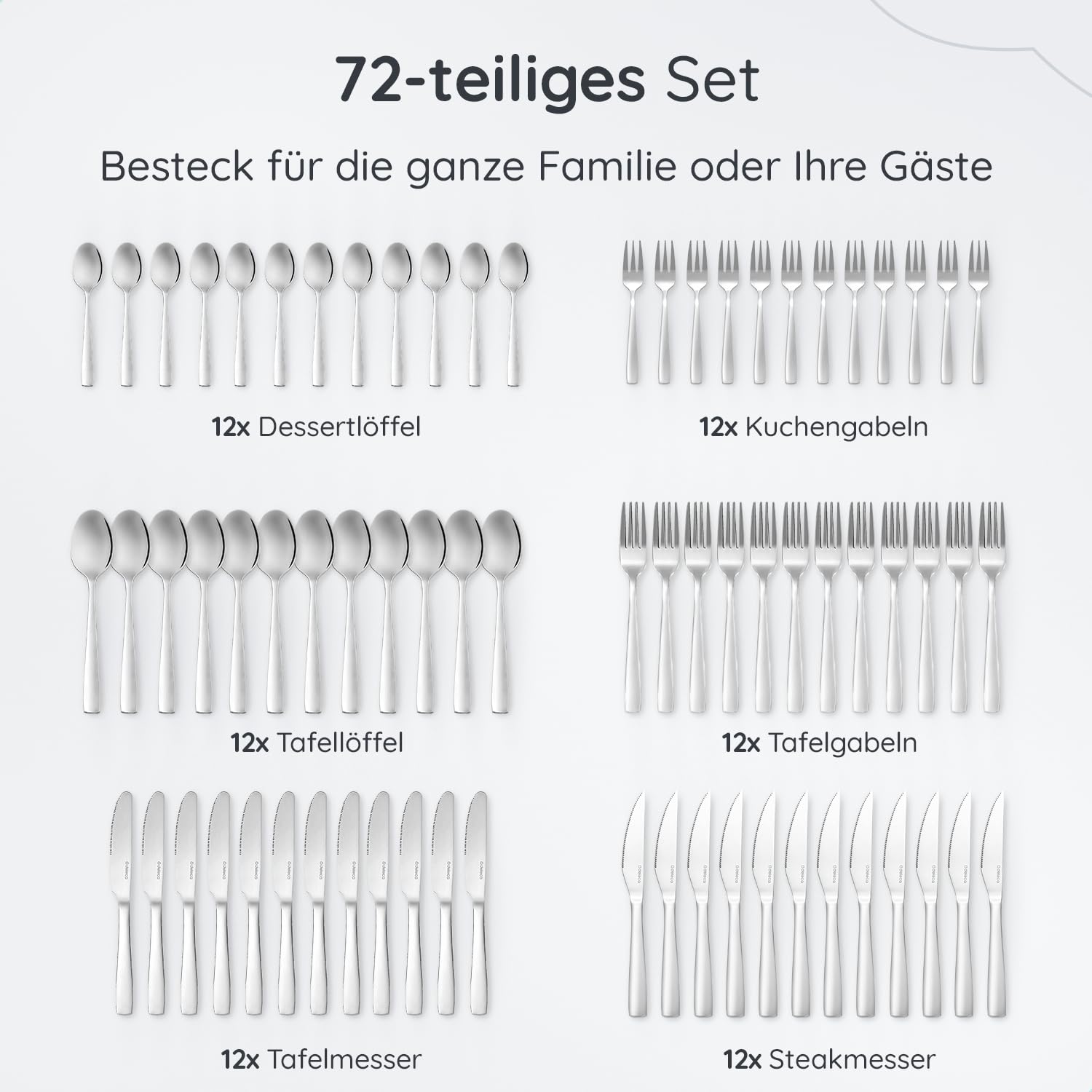 Deleca stainless steel cutlery set for 12 people (72 pieces): Dishwasher safe, silver table cutlery for home
