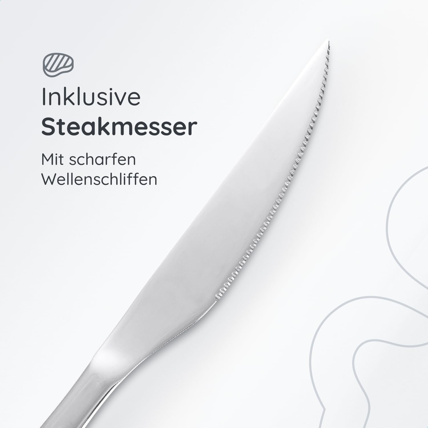 For 12 people : Ergonomically shaped cutlery for stylish dining in everyday life and at special occasions