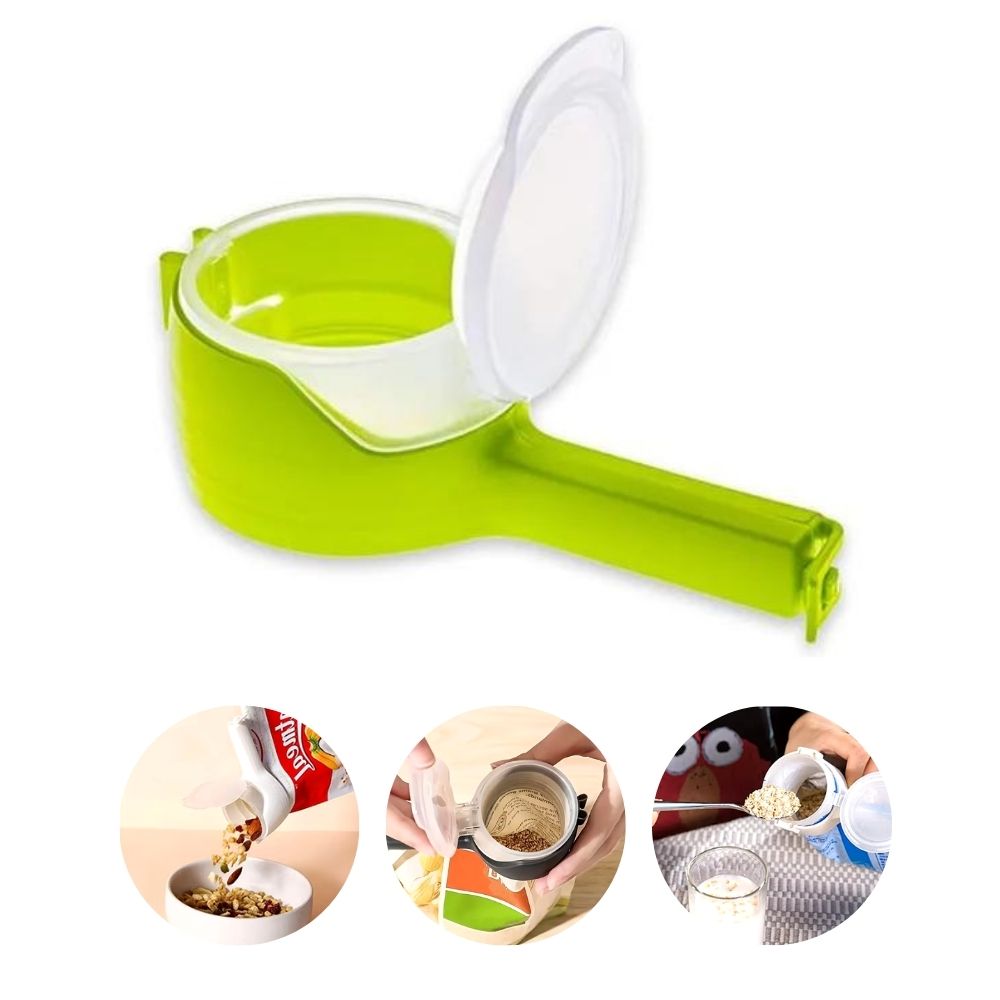 Say goodbye to awkward snacks and hard-to-open bags! This sealing clip with pour spout combines freshness and convenience in one practical tool.