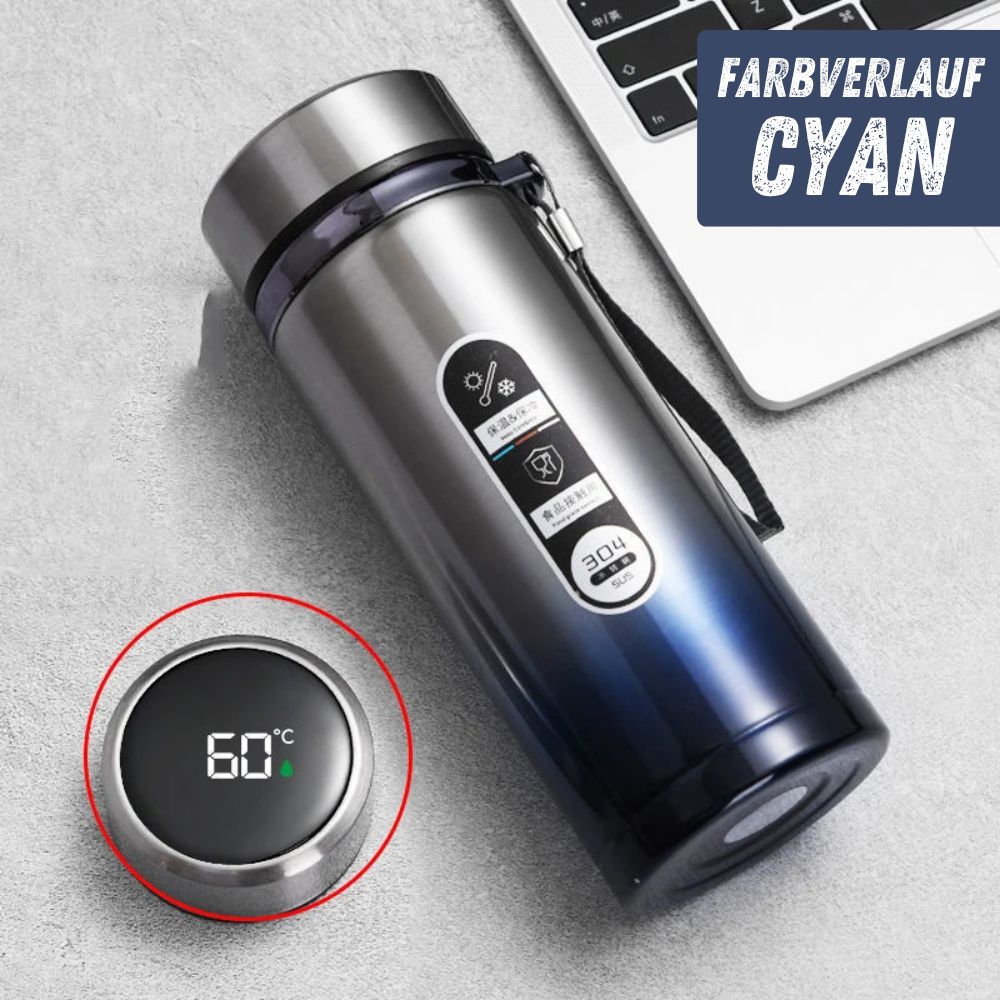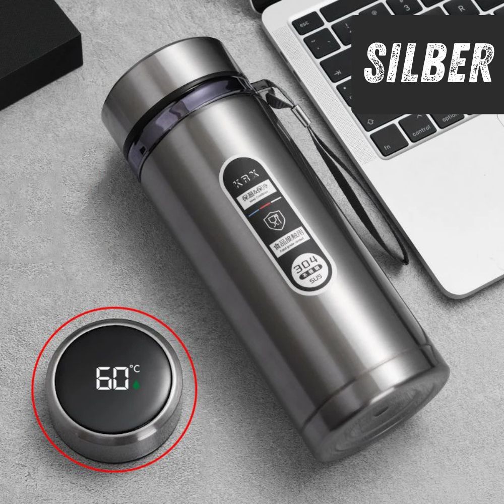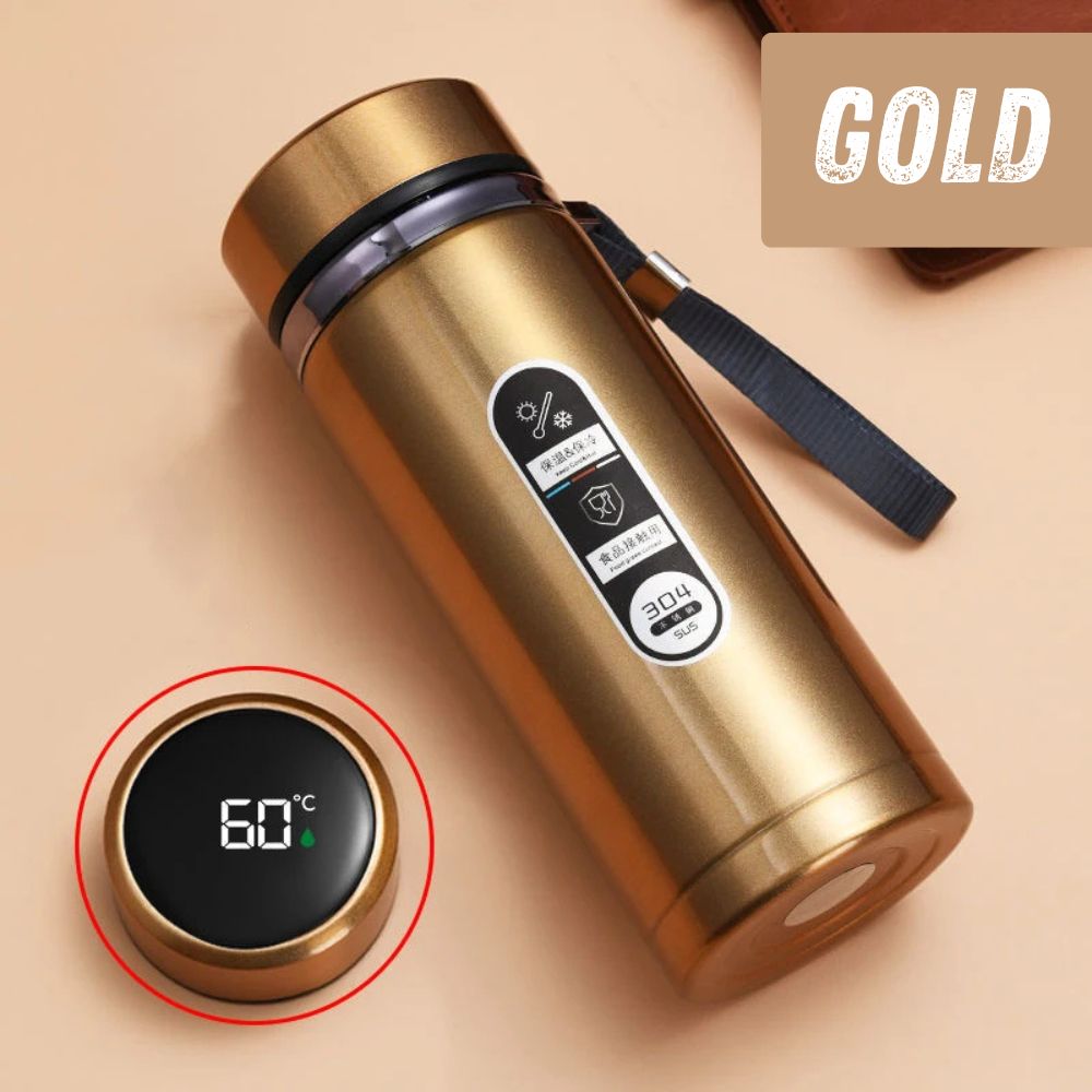 Stainless steel vacuum thermos flask with LED temperature display: insulated mug