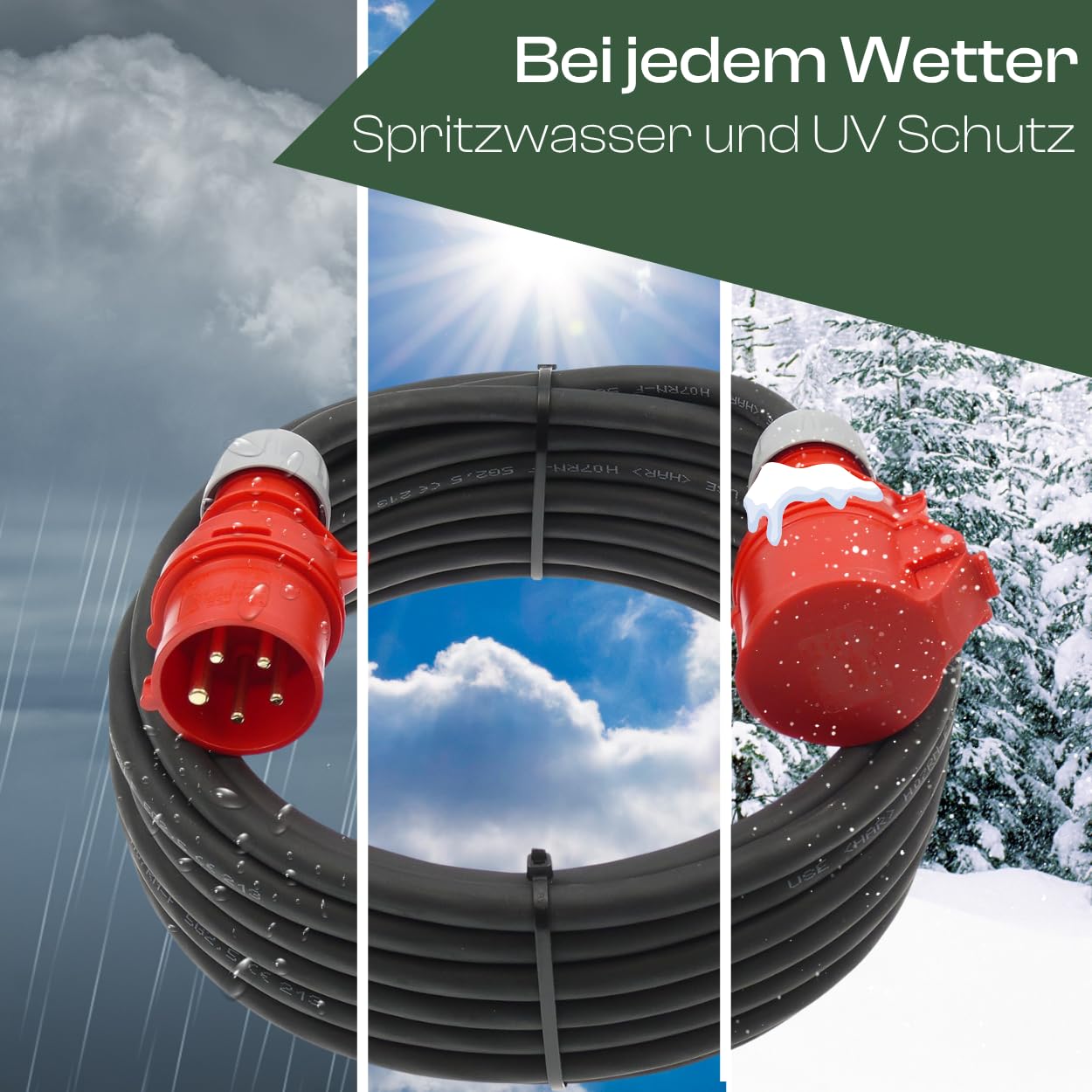 The flexible 16A/400V CEE cable is ideal for workshops, construction sites, or garages and impresses with its high quality "Made in Germany." Thanks to its robust rubber sheath, the cable remains flexible even in cold temperatures and is resistant to oil, chemicals, and mechanical stress.