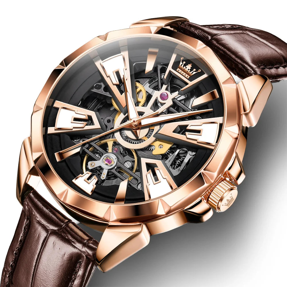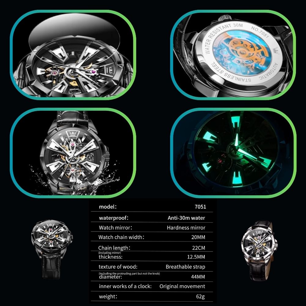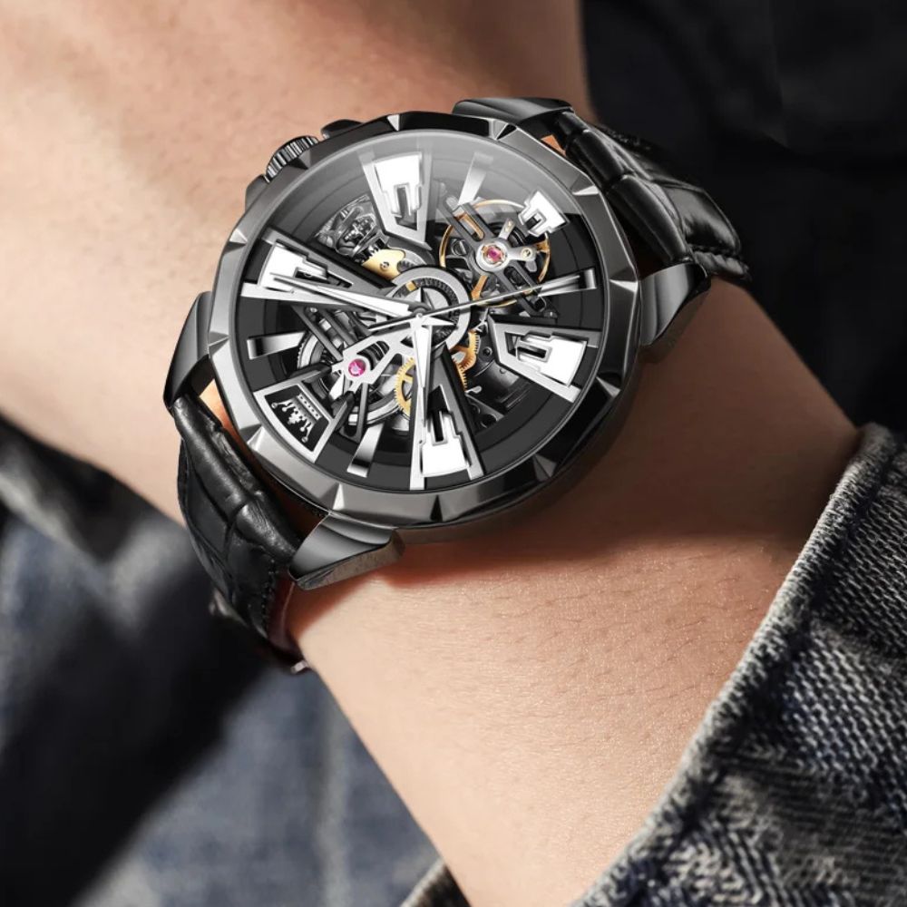 Double-sided hollow design: Admire the fascinating insight into the inner mechanics of the watch - a symbol of the beauty of watchmaking.