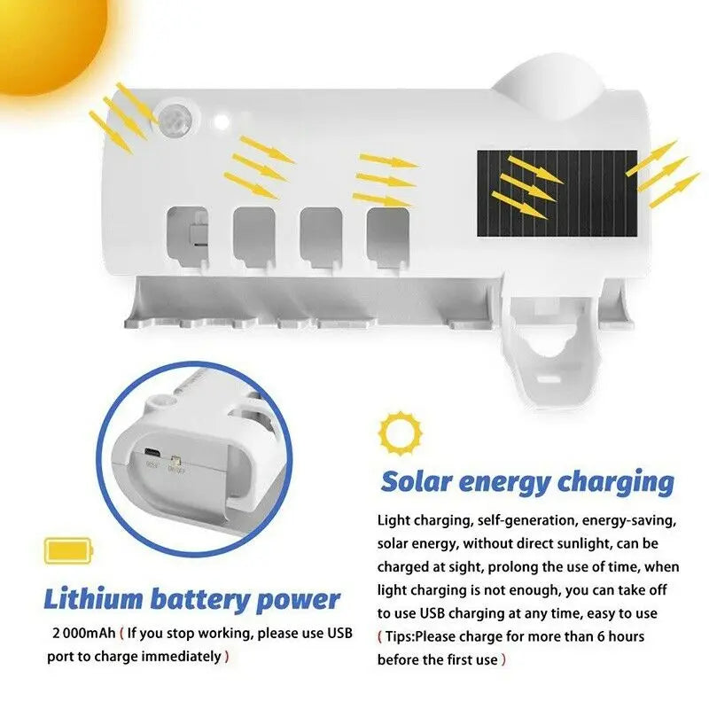 UV Sterilizer Toothbrush Holder | Solar Powered and Rechargeable: Space-saving & Hygienic