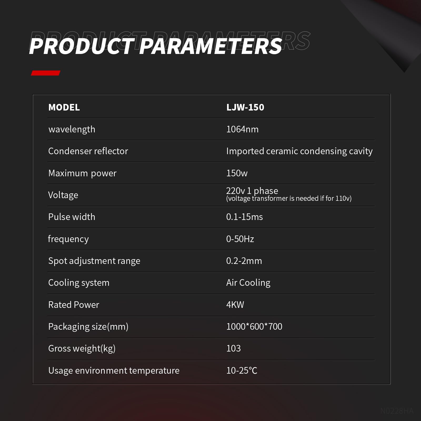 - Laser power: max. 150W