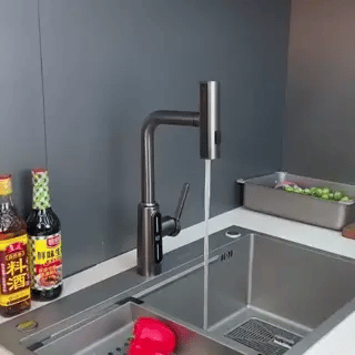 • Edelstahl Wasserhahn mit 360° Rotation - 4 Wassermodi | Mehrschichtfiltration (Dunkelgrau)