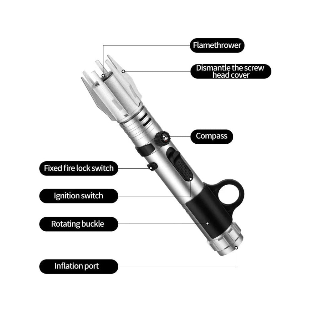 Ressemblant à un véritable sabre laser , ce briquet puissant et élégant produit des flammes puissantes et résistantes au vent qui allument les incendies en un instant , que ce soit au camping, au barbecue ou aux feux de camp.