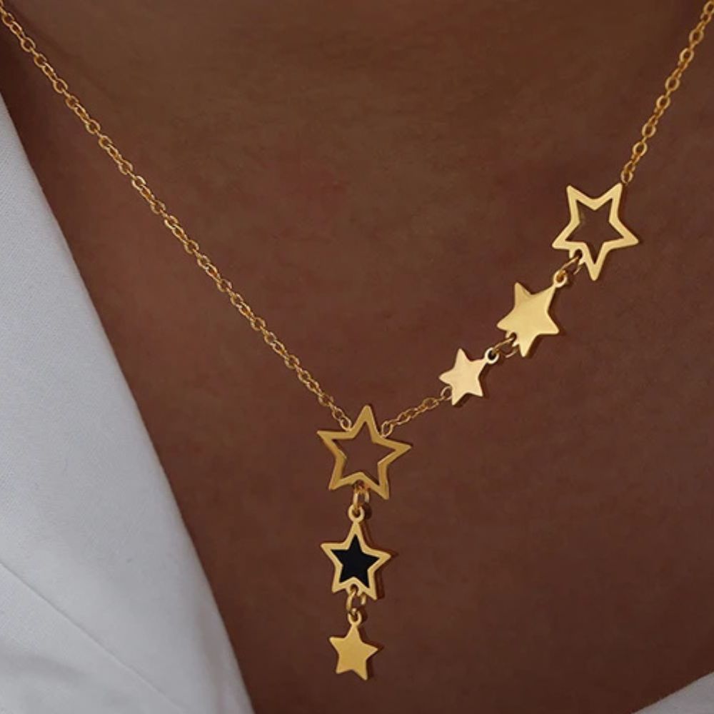 Collier pendentif étoile tendance pour femme | Acier inoxydable titane plaqué or, acrylique noir