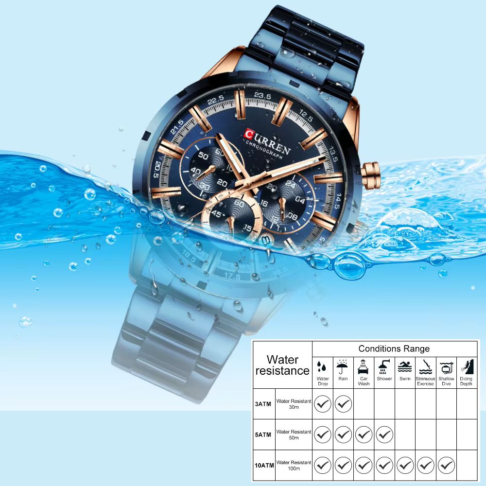 Étanchéité 3 ATM : Résiste aux éclaboussures d'eau et au lavage des mains (ne convient pas à la douche, au bain ou à la natation).