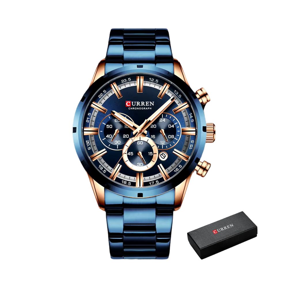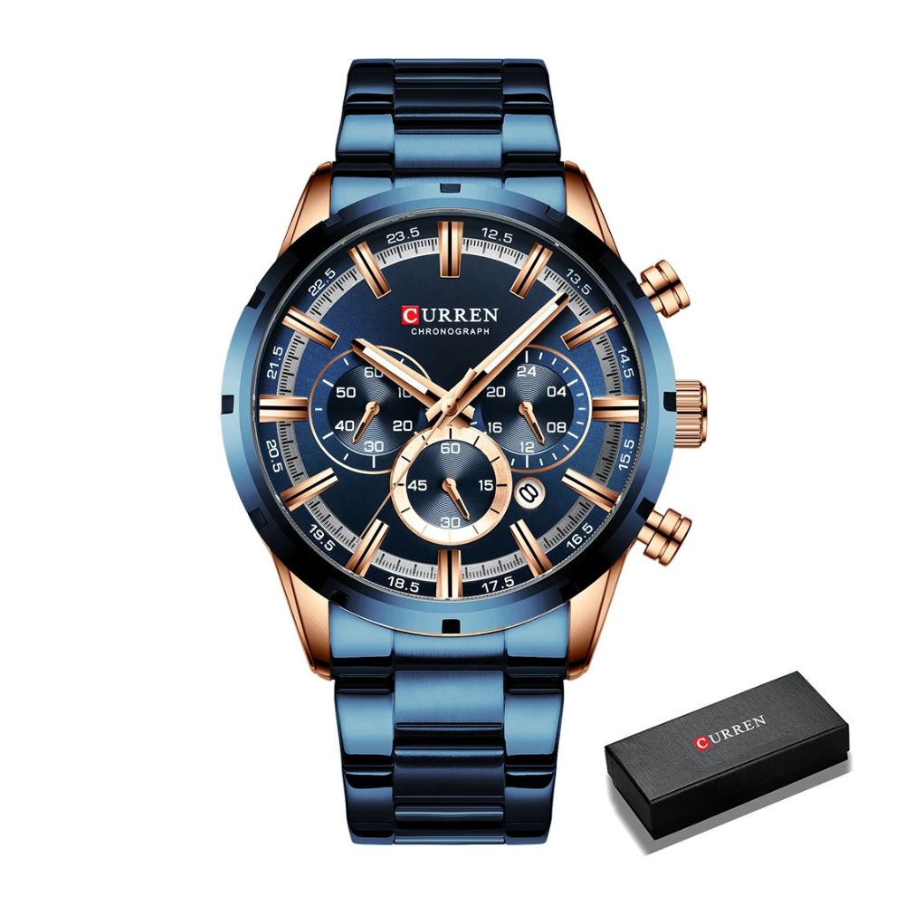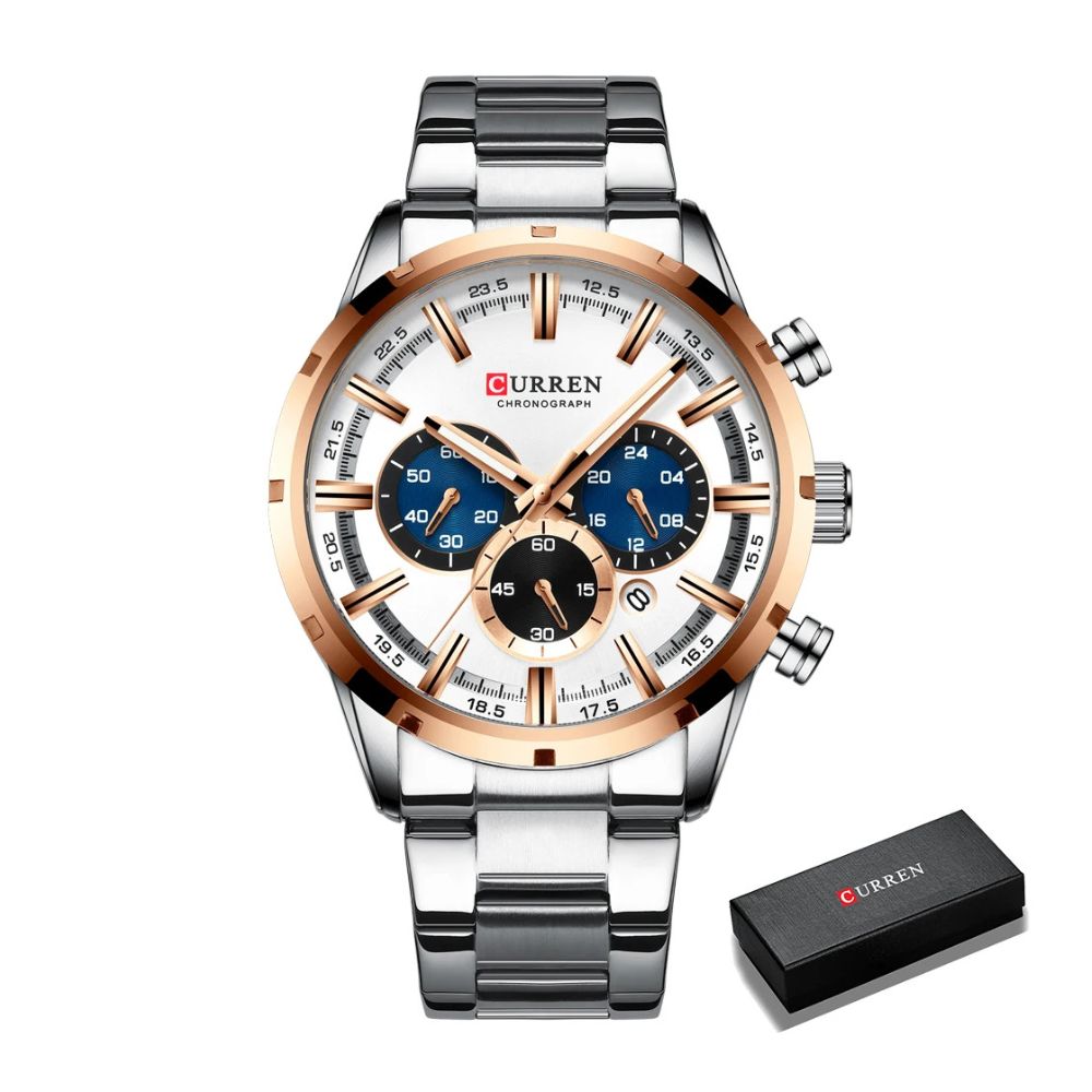 • 1x Montre-bracelet chronographe CURREN pour homme avec coffret cadeau d'origine