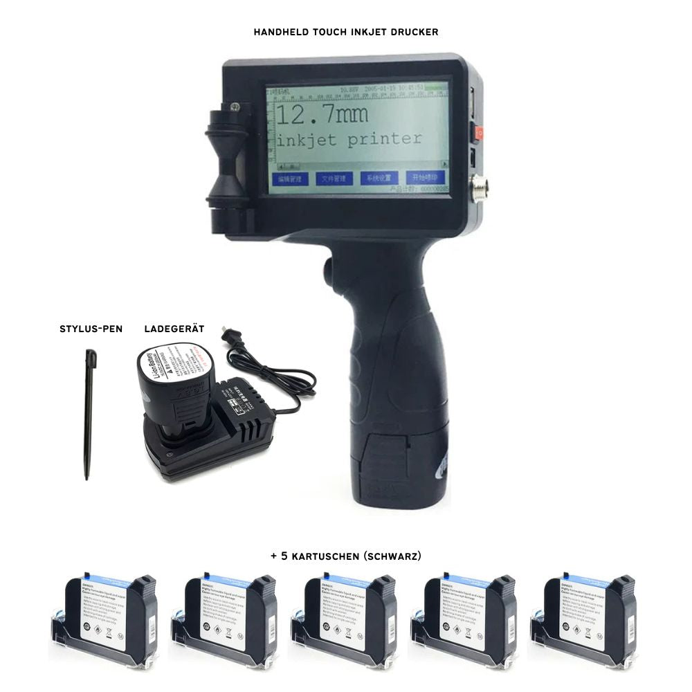 Imprimante à jet d'encre tactile portable (4,5 pouces) avec 5 cartouches | Hauteur d'impression 2-12,7 mm, 600 DPI, 2 800 mAh