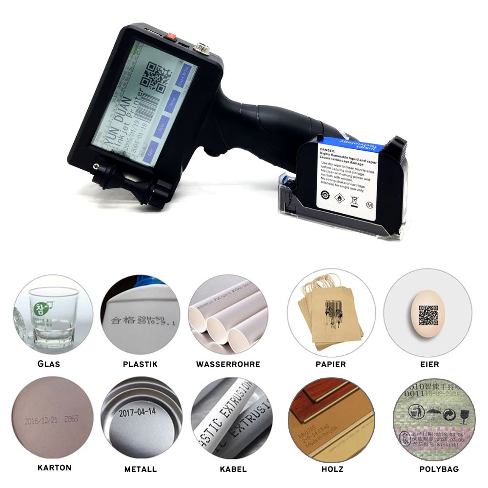 Cette imprimante à jet d'encre tactile portable est parfaite pour imprimer sur des boîtes, des sacs en plastique, des étiquettes, des cartes IC/IP, des céramiques, des bouteilles en verre, des fils et des bouchons métalliques. Elle vous permet d'imprimer des codes QR, des codes-barres, des textes, des symboles, des données et des logos - tout ce dont vous avez besoin pour vos produits !