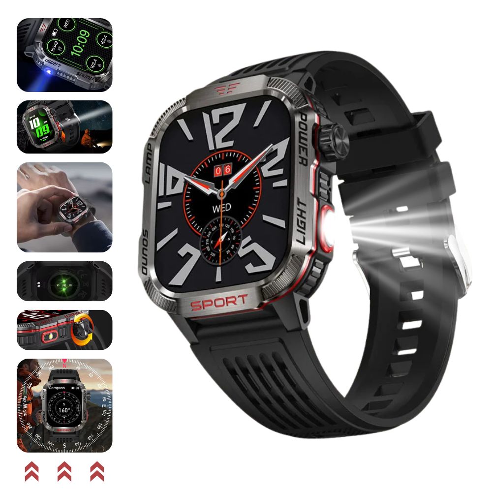 Montre intelligente militaire multifonction | Tracker d'activité en plein air : appel BT, vérification de facture et lampe de poche
