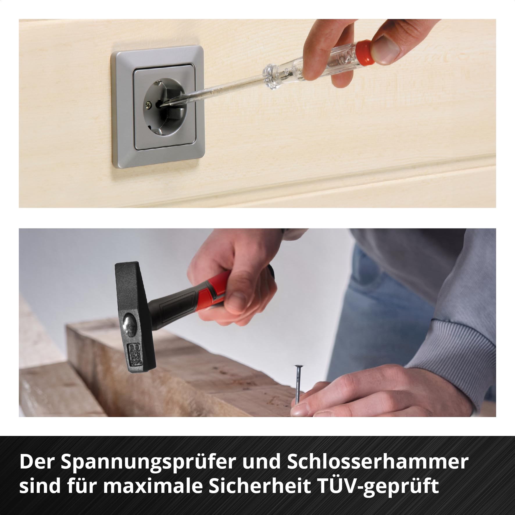 Der Einhell E-CASE Werkzeugkoffer bietet mit 80 hochwertigen Werkzeugteilen die ideale Grundausstattung für Reparaturen, Heimwerken und Werkstattarbeiten.