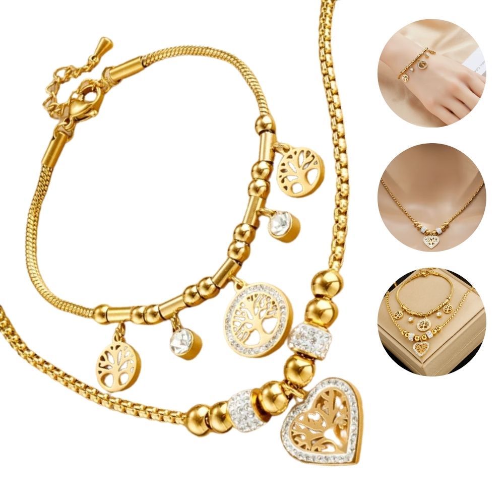 316L Edelstahl Schmuck-Geschenkset für Damen: Halskette & Armband mit Herz- und Lebensbaum-Anhänger