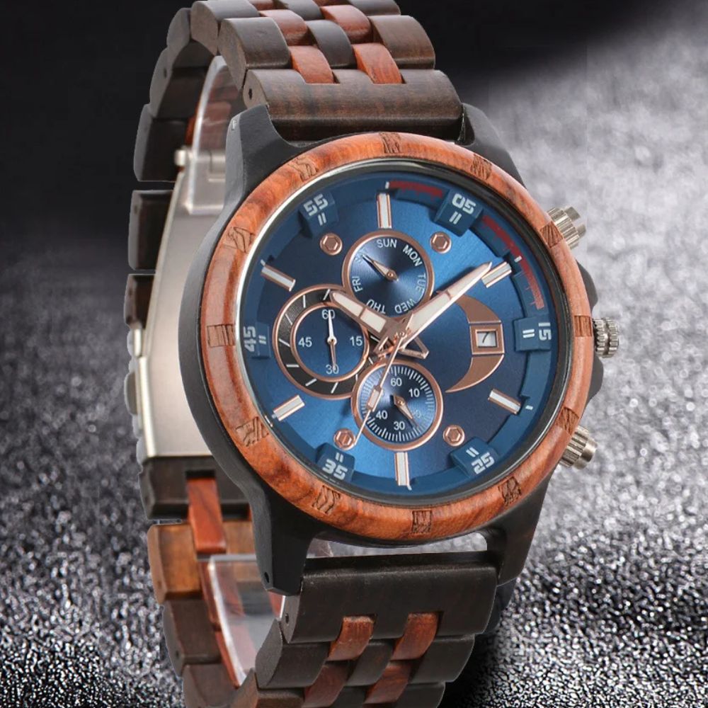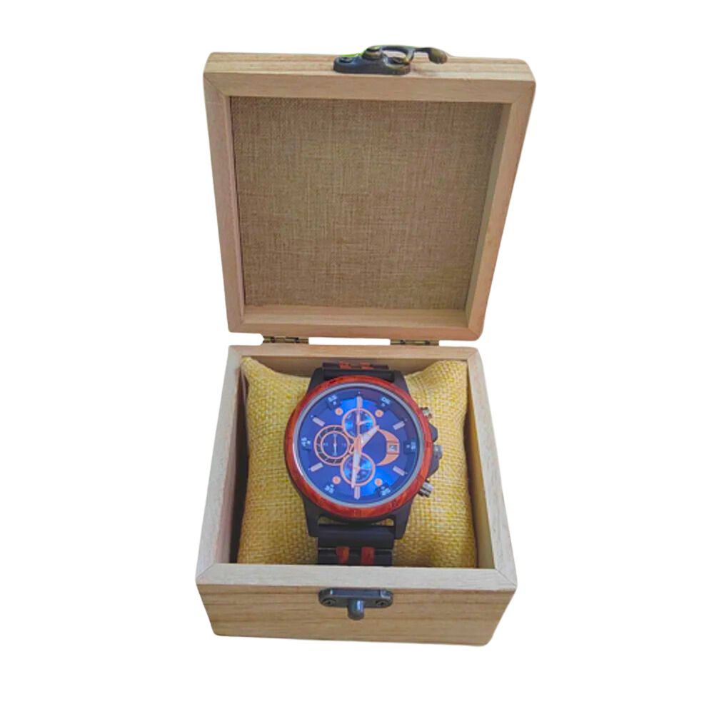Einzigartiges Design: Die handgefertigte Uhr aus rotem Sandelholz kombiniert natürlichen Charme mit moderner Eleganz. Jeder Zeitmesser hat eine einzigartige Holzmaserung, die ihn zu einem Unikat macht.