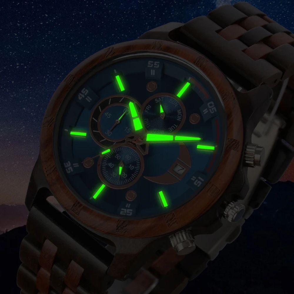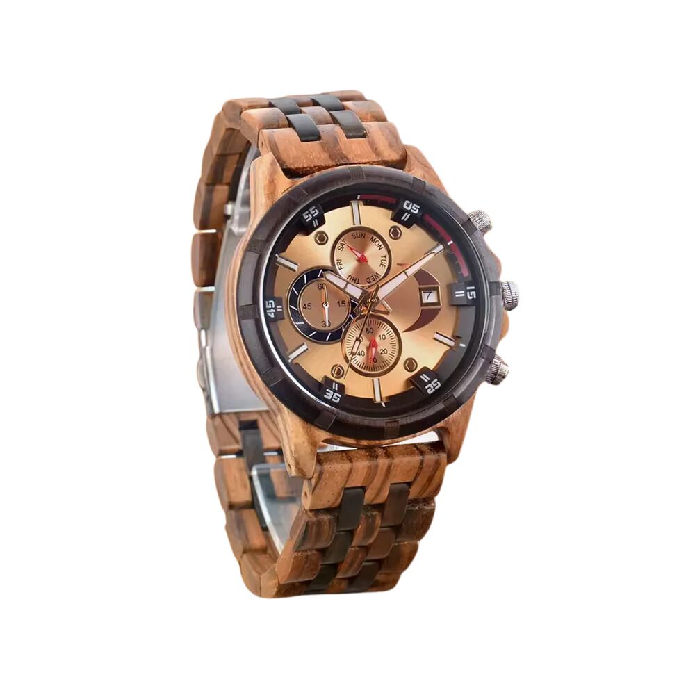 Multifunktional & Robust: Mit einer klaren Anzeige von Wochentag, Datum, Stunden und Sekunden behalten Sie stets den Überblick. Das robuste Holzgehäuse ist langlebig, leicht und deformationsbeständig.