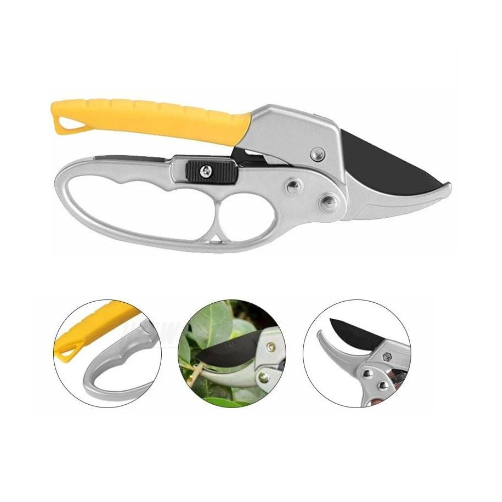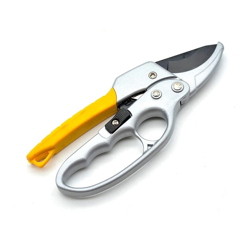 Gartenschere aus Kohlenstoffstahl mit Sicherheitsschloss und Ratschenmechanismus 1
