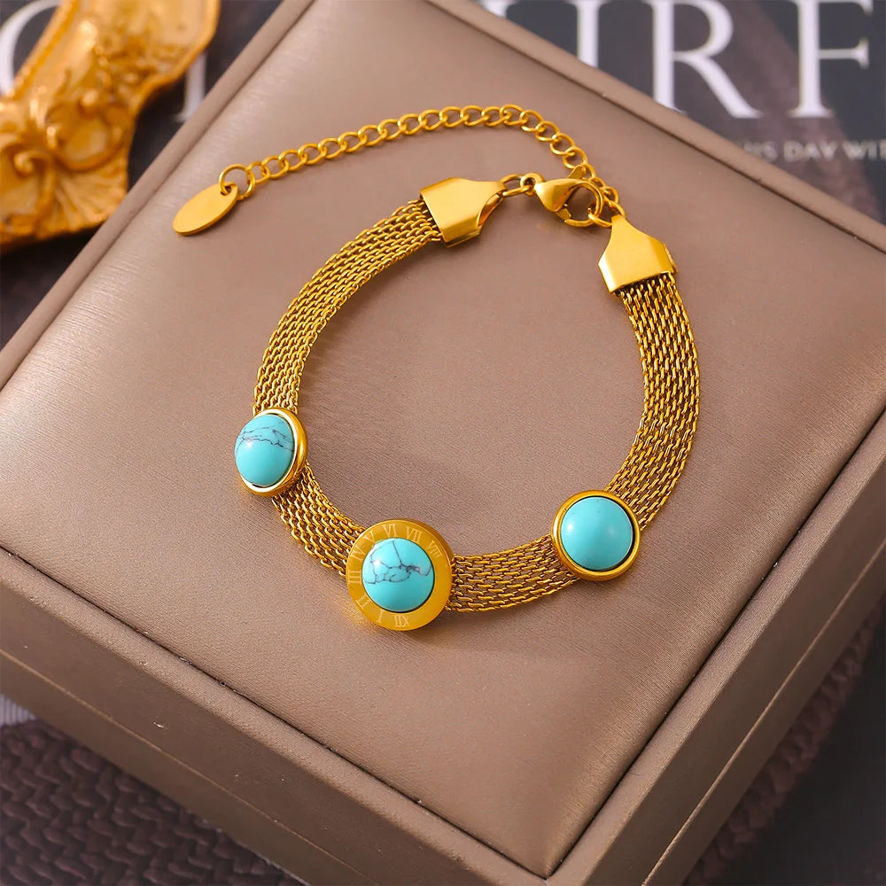 Goldplattiertes Titanium-Edelstahl Armband mit Türkis-Anhänger | Luxus-Damenschmuck