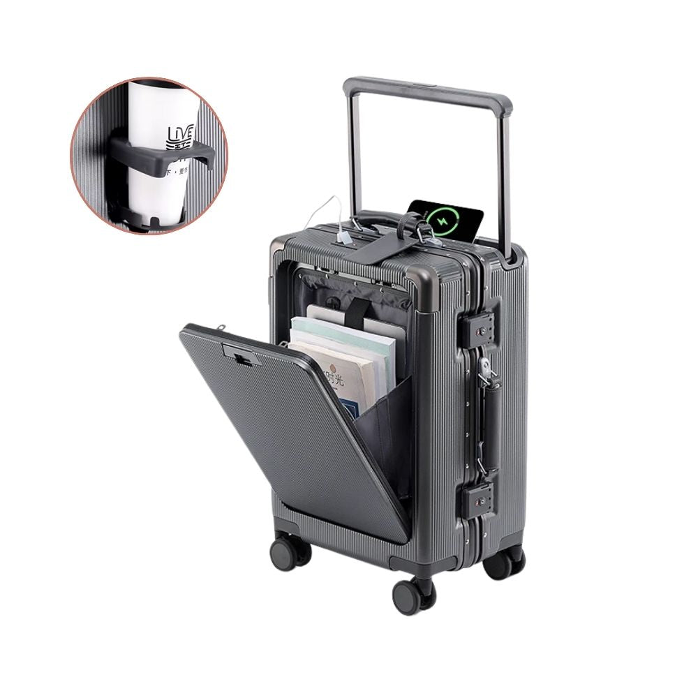 Multifunktional Trolley Koffer mit Frontöffnung | USB-Anschluss, Becherhalter, Handgepäck & Reisekoffer
