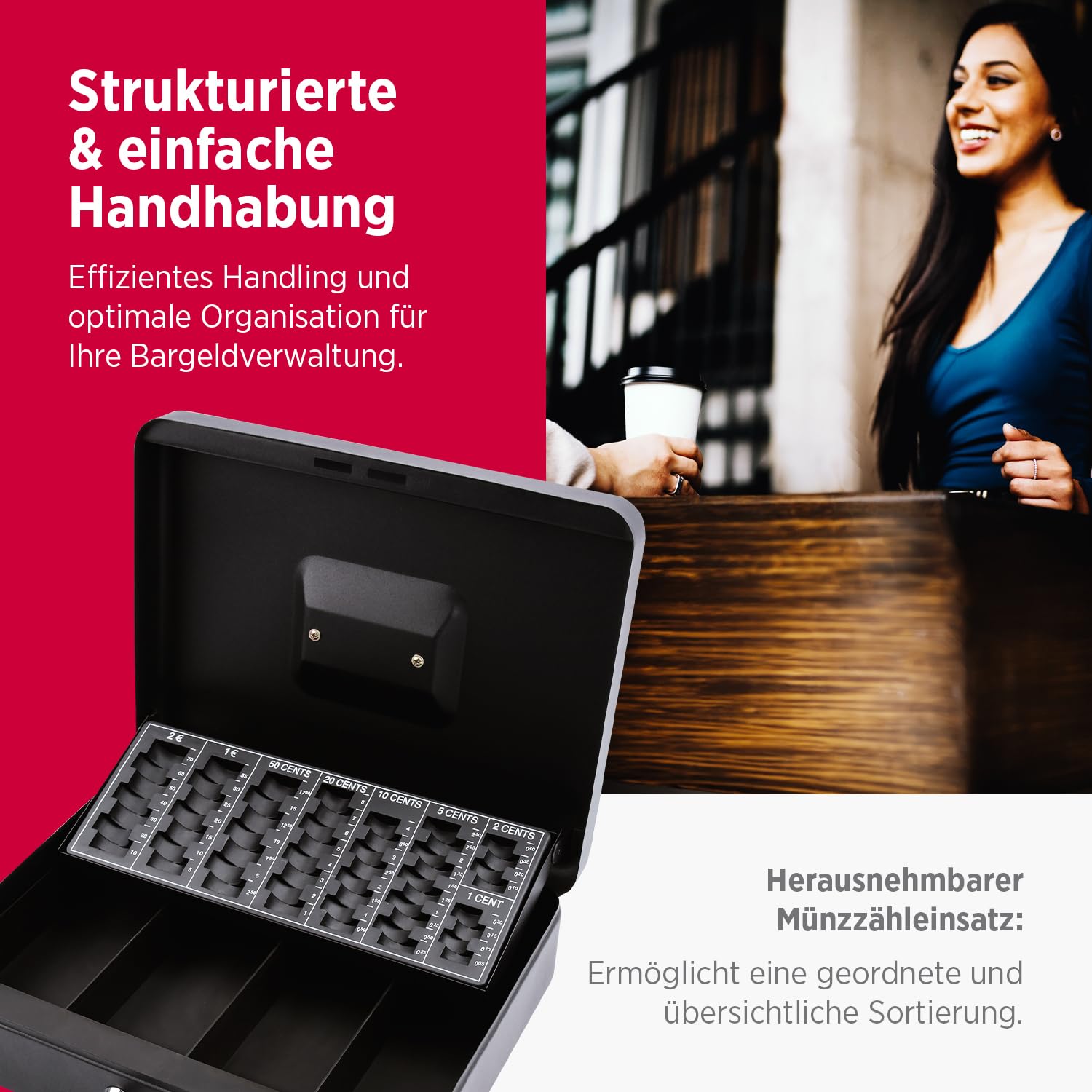 - Sicher & stabil: Geldkassette aus pulverbeschichtetem Stahlblech mit Zylinderschloss & 2 Schlüsseln