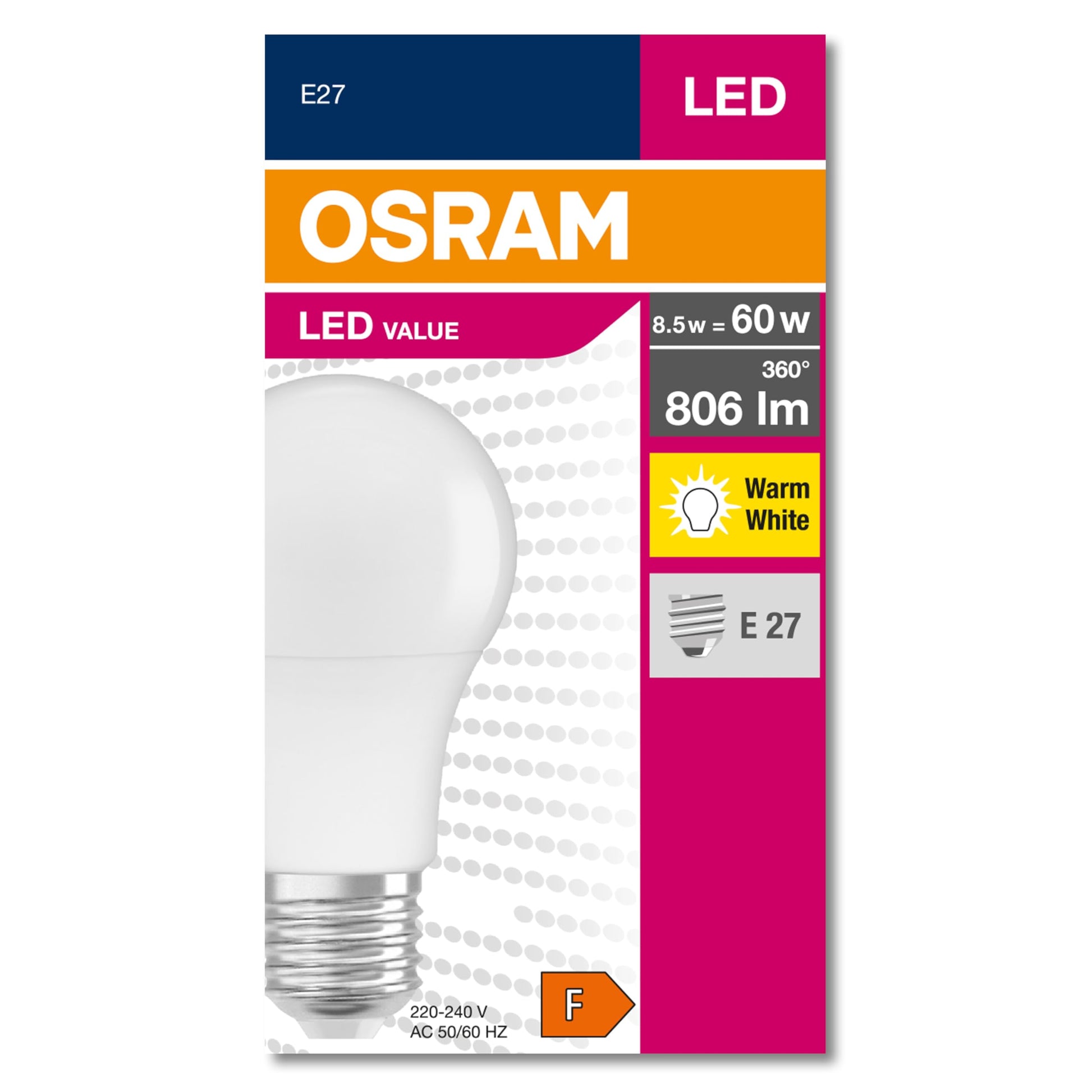 OSRAM LED mit E27 Sockel (8,5W-Warmweiss: 2700K): Matt 10er-Pack