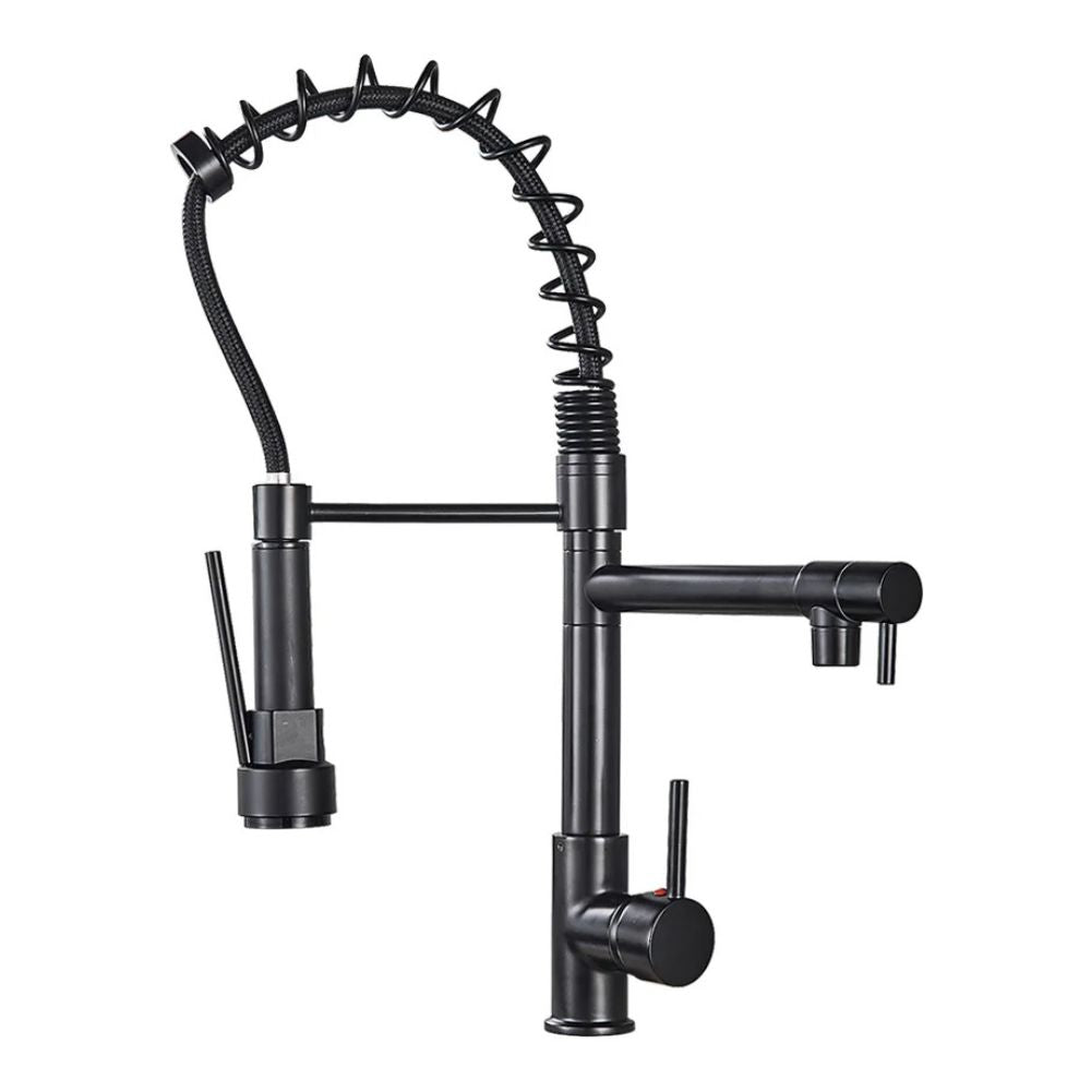 Rozin Küchenarmatur mit 2 Ausläufe | Herausziehbar, Einhebelmischer für Warm- & Kaltwasser (Schwarz)