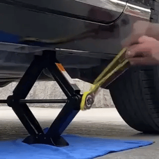 Leicht zu bedienen: Setzen Sie den Griff ein und heben Sie den Wagenheber durch einfaches Drehen an. Ideal für Reisen oder Notfälle.