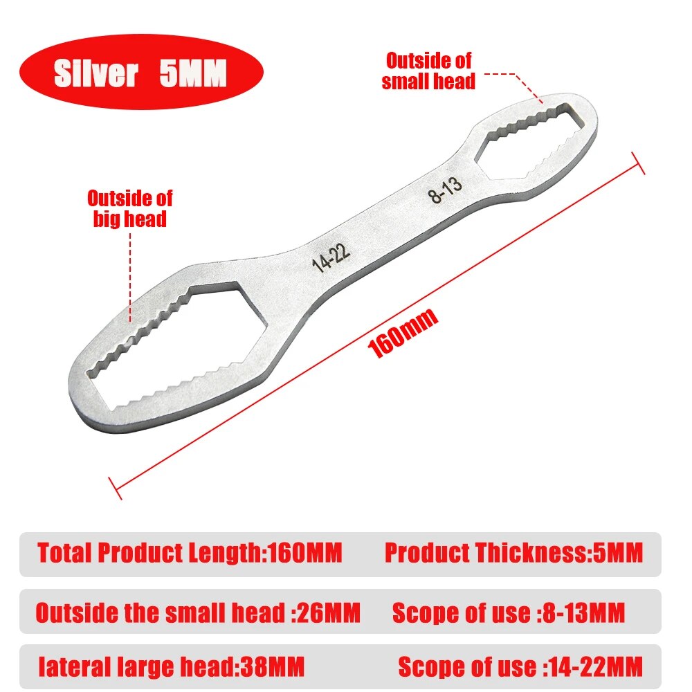 Die Produktlänge variiert zwischen 145mm und 160mm, die Dicke zwischen 3,5mm und 5mm, und es kann Schrauben von 3mm bis 22mm bzw. 8mm bis 17mm lösen.