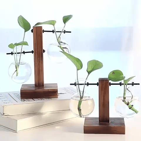 Transparente Glühbirnenvase mit Holzständer | Stilvolle Hydroponik-Deko